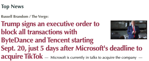 Trump Signs An Executive Order To Block All Transactions With Bytedance And Tencent Starting Sept 20 Just 5 Days After Microsoft S Deadline To Acquire Tiktok Russell Brandom The Verge Latest International News